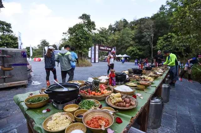 酣畅淋漓的山林疾徐后,等待选手们的是一场味蕾的狂欢。长桌宴上鲜得卷舌头的秘制老汤和米干是一双绝配,在这森林覆盖面积达97%的大山里,连土豆、玉米这样低调的杂粮也分外清甜。瓦片烤肉、牛扒烀、蕉叶包烧...有选手大呼:别管我,让我吃到扶墙走。